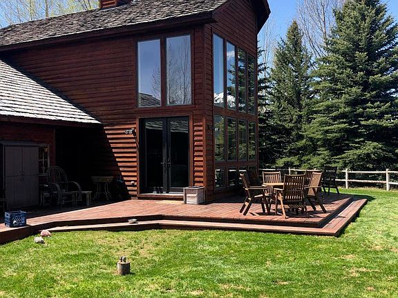 Live at the base of the Tetons with magnificent views of the Grand and the entire range. Large picture windows show off this incredible view. Located in the small community of Solitude. Just a few miles from downtown Jackson. High speed fiber optic cable was installed in 2018. The large 1000 sf, 2 car detached garage with space for a guest house above will hold all the toys a buyer would want. Electric and plumbing to the space. The mature landscaping includes large pine, aspen and cottonwood trees. The seasonal pond attracts water fowl and wildlife.