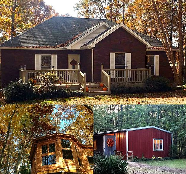 First time offering! With this amazing storybook setting of 5.35 incredibly private acres you will find a custom one level brick home with 1,750 square feet of living space that features 3 bedrooms, 2 baths, kitchen with appliances, island area, plus walk-in pantry, large open family room, plus a covered deck that spans the back of the home. The guest home features approximately 1000 square feet of living space with 1 bedroom, 1 bath, kitchen and family room. A darling 300 square foot studio is located on the property perfect for those who want to have a separate office for comfort for those who love the ultimate in outdoor experiences. Homes plus acreage are situated down a private lane approximately 1/4 of a mile off the road. Appt only. Guest house possession negotiable 30 days from closing. Property begins at the orchard (blackberries, blueberries, figs, peaches, apples and pears) and goes to the creek below the cabin, in the back of property. RV hookup on property. Home warranty.