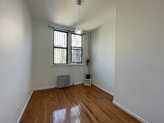 First floor two bedroom with hardwood floors, high ceilings and bedrooms on opposite ends of the apartment. The building offers a shared backyard space. The rent includes heat and hot water. The tenants are responsible to pay for cooking gas and electricity. Located on Grand street and Morgan avenue. Within easy reach to the Grand St L train station and a short distance to Cooper Park. Text or email to schedule an appointment to view.