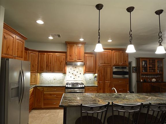 Beautiful one of a kind property in Mesquite, NV. This custom home was built in 2011, sits on 3.9 acres, and is located across the street from one of Mesquite's 6 golf courses. A huge lot, quiet neighborhood, and breathtaking mountain views are just some of the many features of this home. This location is perfect for those seeking horse property and or investment opportunity. Custom cherry wood cabinets throughout. Travertine floors throughout. Granite countertops throughout. Huge walk in pantry with custom shelving. Upgraded all stainless steel appliances (gas and electric). Master bathroom has double vanity, sinks and a large custom walk-in shower. Master bedroom has large walk-in closet. Giant bonus / media / game room. Separate laundry room. Home is pre-wired for wall mounted flat-screen TV's, security cameras and surround sound. Covered patio. 870 SF 3 car garage with pebble tec flooring. Garage has a large attic storage space. Garage also has 240v outlet (optional work-shop). Water softener.