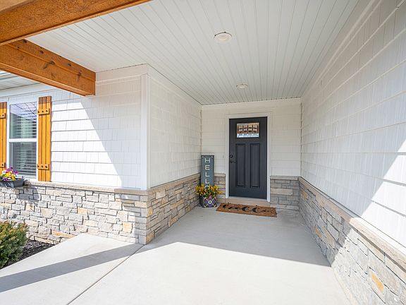 Proudly introducing 955 Hamilton Dr., a true custom home with amazing details! Built in 2019 by VERSLUYS CONSTRUCTION, this 1,966 sq. ft. high quality ranch home comes complete with a finished 9' deep pour lookout basement, adding another 1,375 sq. ft., providing a total of approximately 3,341 total finished sq. ft.! Stone & shake exterior with a 3-car wide concrete driveway is complimented by a cedar gable, column and shutters, offering superb curb appeal! Welcome to the covered porch showcasing a black Craftsman-style entry door. The inviting foyer displays shiplap wall detail, with hooks, shoe cubbies and display shelving supported by corbel millwork. Warmth and beauty embrace the heart of this home showing a gorgeous Living Room with a 10' ceiling. A timeless stone gas log lit fireplace features knotty wood mantle and shiplap wall detail embraced by etched-look glass transom windows. The chef's delight kitchen boasts KraftMaid white tiered cabinetry and contrasting black island, finished with quartz countertops. A stainless-steel farmer's sink, touchless faucet system, reverse osmosis and eye-catching pendant lighting makes the island-breakfast bar a favorite gathering area. White subway tile backsplash, walk-in pantry, 2nd pantry with pull out drawers, Samsung black steel appliances, butler's station revealing glass front cabinets and built-in wine rack. The dining area presents appealing white wainscoted walls, 3 side-by-side window display and a full glass atrium door with built-in blinds, that opens onto a fabulous covered deck accessorized with a spindled railing, bump out for grill and sun shades... enjoy outdoor living at its finest! The primary bedroom suite also opens onto this covered deck area! This spa-like sanctuary presents illuminating crown molding, 3 side-by-side transom windows, walk-in closet and a luxury bathroom hosting stunning quartz vanity tops, custom framed mirrors, attractive light bars, newly (scheduled soon!) grouted subway tile in shower with built-in niche and glass door and a pocket door to private toilet area. Elegant modern light fixtures, gorgeous interior color schemes, luxury vinyl flooring, 9' and 10' ceilings and high-end fixtures combined with 2-panel solid white doors and tall base trim create lovely ambiance in this pristine home. Alcove window setting accents the second bedroom. The shared hall bath also has 2 convenient sinks with a pretty quartz vanity top, oiled bronze fixtures, tub-shower surround and recessed linen shelving. The 17'x13' mud-room with shiplap detail accommodates a seat bench, display hooks, upper cubbies, shoe cubbies, and separate upper-lower cabinets with gray quartz tops, all together, present the perfect drop zone space for a busy lifestyle. Double white 2-paneled doors on a rail system open into the laundry room, equipped with a white deep utility sink and LG front load washer and dryer. Wait, there is more! The well designed and beautiful open black spindled staircase displays a custom built-in bookcase. This leads you to the 9' deep pour finished basement! You will get so much use and enjoyment out of the family room, exercise/bonus space, 4th bedroom and 3rd full custom bathroom. And, be impressed with the gray-brown luxury vinyl flooring, lookout windows and barn doors on a rail system that opens into the unfinished basement. A 12'x10' tornado shelter or future wine cellar is an added bonus. Steel beams, copper water supply, 92.1 Goodman energy efficient furnace, 50-gallon power vented hot water heater, water softener and a reverse osmosis system complete the basement. For peace of mind the owners have equipped this home with a Generac automated digital load management system whole house generator. This deep lot setting has plentiful landscaping & a backyard with evergreen trees & 4 beautiful birch trees! Walking/bike path, park with shelter, play equipment & a super cool wooded path nearby. ***NO HOA FEES & NO SSA TAX***
