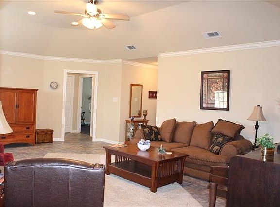 MOVEIN READY This 2005, 1476sqft, 3 2 2 brick home is ready for a new family. It is close to schools and shopping. Easy care tile floors in all the living areas and carpet in the bedrooms. Master suite is separate from guest bedrooms and bath. Master Suite has his, her closets and sinks. All appliances included. Oversized attached garage and all on this corner lot. Furnishings are negotiable.