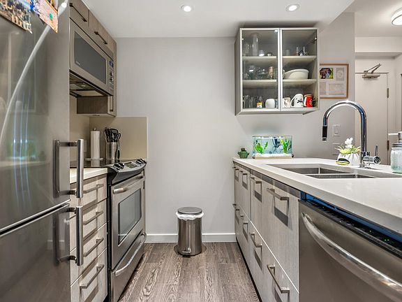 Welcome to Strathcona Village. This Southwest facing unit with Northshore views is a must see! The modern clean layout includes laminate floors throughout, quartz counters, under-cabinet lighting, stainless steel appliances and a soaker tub. Plenty of windows allows for an abundance of natural light and the patio is perfect for quaint dinners while enjoying the beautiful views of garden and Harbour. This central location has some of the cities best restaurants/breweries around the corner and less than 5 minutes to downtown. Amenities include two fitness centres, meeting rooms, communal gardens with BBQs, firepit and kids playground, you can even grow your own fruits/vegetables. 1 parking and 1 storage locker included
