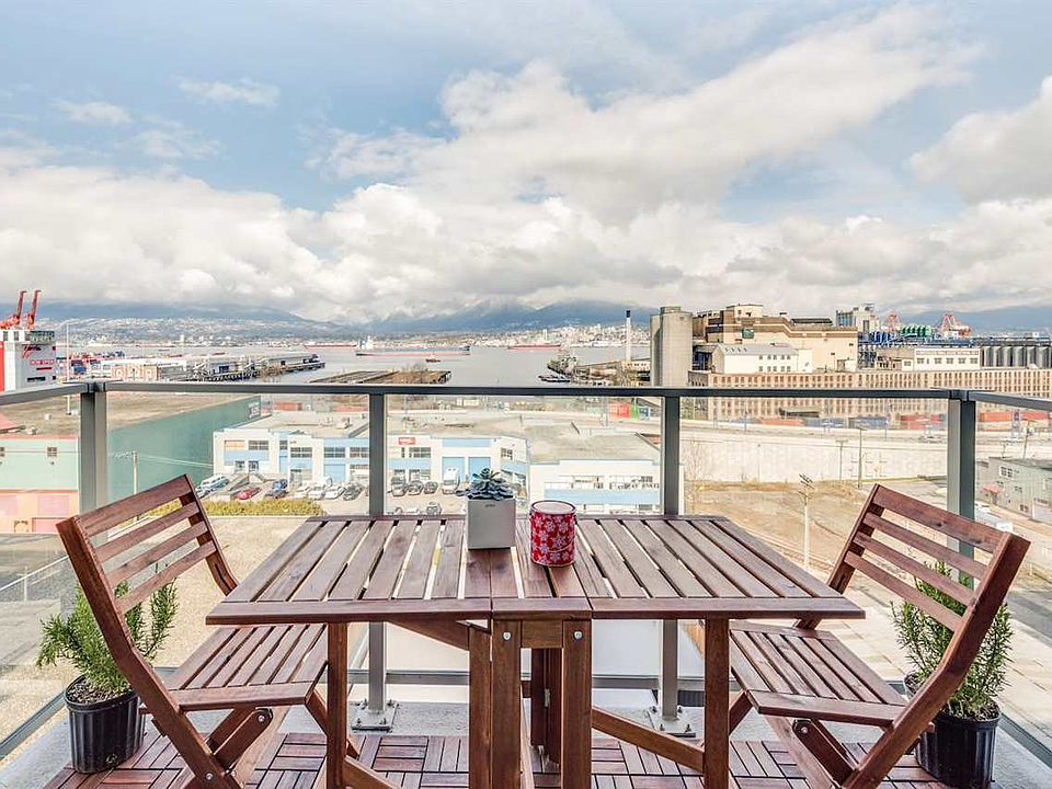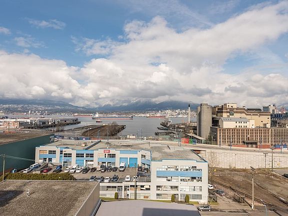 Enjoy unobstructed mountain, water and city views from The Heatley at Strathcona Village! This spacious home offers two full size bedrooms, a large flex space and a unique enclosed balcony / solarium - not available in many homes and perfect for your home business. At 807sf this home feels, open, bright and private! One full size parking stall close to elevator with EV charger, one moto stall, one oversized external storage locker included. Short term rentals and pets permitted. Amenities include outdoor terraces and gardens, kids play area, BBQ, gas fire pit, fitness room and common bike rooms. Enjoy the livability of concrete construction. From here, walk or transit to Downtown, the Drive, Strathcona Park and breweries.