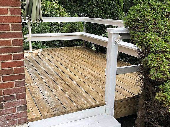 - Outside Features: Deck, Sidewalk, Patio/Deck - Covered, Storage Building