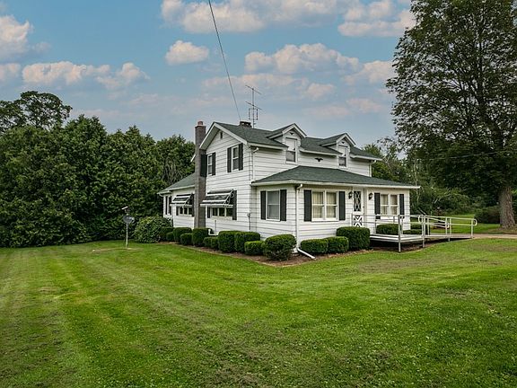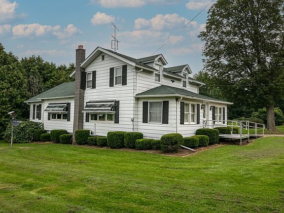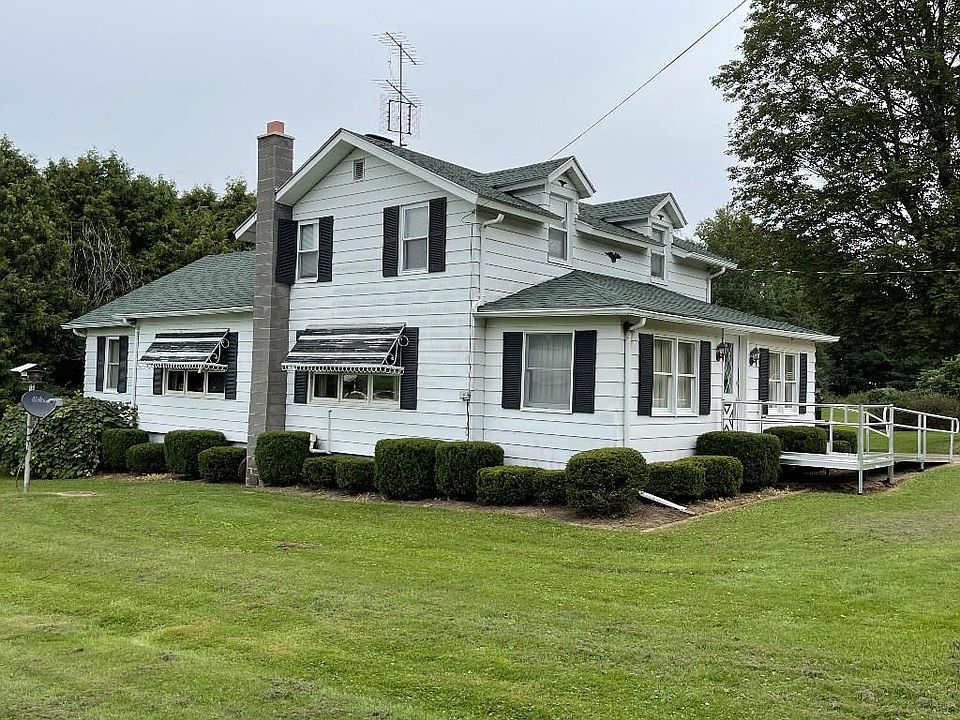 This has been loved for generations and you will love it too! The pride of ownership is evident inside and out. The 3-4 bedroom home offers first floor living with 2 bedrooms and a bonus room on the second floor for those needing more space or having a larger family. The oak staircase and the wood framed thermal pane windows add to the charm and the floor coverings and the interior are like new. Step out the back door and into the two car garage complete with work bench and attic storage. The flat spacious yard allows room for a pool, a garden, additional outbuildings, and more. You will enjoy producing grapevines, an orchard loaded apple and pears trees, the berry patch, and a babbling brook at the rear of the property. There is a second outbuilding that has been used for chickens and as a woodshed. This would be a great little homestead! Outside of town on paved road yet just a few minutes to town and Route 15/I99. This place is immaculate.