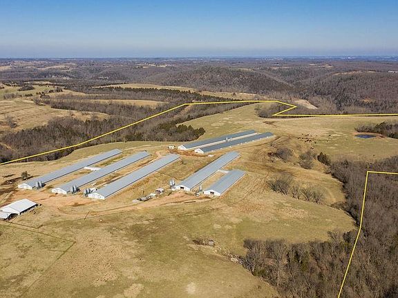 The 162 acres is comprised of Approx. 50/50 split of Pasture and Hardwood. Located off Hwy 311 within a few miles to Big Cedar Lodge, Golfing, Fishing on Table Rock Lake or Long Creek, Sight Seeing and Many Outdoor Activities and Adventures The property consists of : A 1500 sq ft Brick Home w/ sunporch , 2 bedroom 2 bath, Central H & A 12 barns, equipment shed, shop buildings Ideal for Greenhouses, horticulture, Private poultry or animal, operations, Warehouses, Multi-Purpose Buildings, Etc. 32 x 60 Insulated shop with 2 car garage , 40 X 60 Open Truss Equipment Shed ,60 X 60 Old Time Farm Barn , 40 x 80 Pole Shed enclosed Two 50 x 500 barns, Four 50 x 480 barns , One 50 x 240 barn, RURAL WATER Through the Farm w/ 1.5 inch line, 2 private wells, 2 springs, 1 pond, 7 Pastures all with Hydrants, Generators , propane tanks Etc. Long list of equipment.