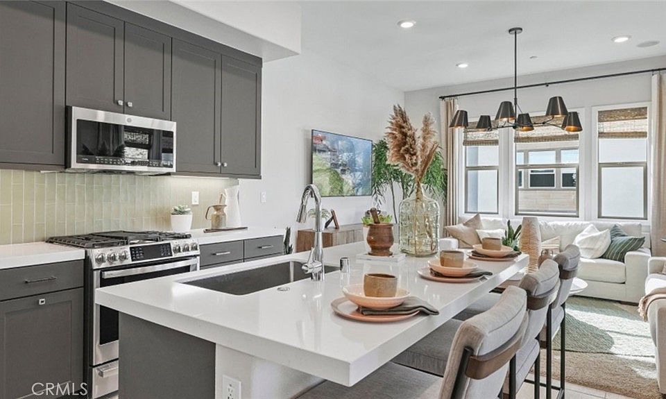 The first-floor foyer leads up to an open-concept design where the Great Room, kitchen and dining room share a footprint on the second level. Sliding glass doors lead to a deck for seamless indoor-outdoor living and entertaining. All three bedrooms occupy the top level of the townhome. Upgraded designer flooring and epoxy garage floors included!