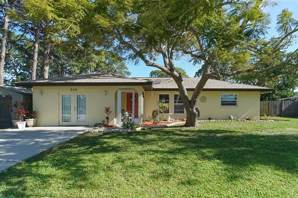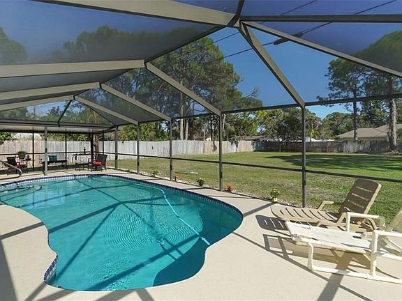 PRICE REDUCED! Take a look at this comfortable 3 bedroom with BONUS ROOM or 4 Bedroom, 2 Bath, POOL home on 5 LOTS in convenient South Venice. This Home has been meticulously cared for and ready for its new owners! Upon walking into this OPEN FLOOR PLAN, your eyes will be drawn to the relaxing POOL and VAST BACKYARD. The INSIDE has recently been PAINTED and 3 SKYLIGHTS adorn this naturally bright home. This home has AMPLE STORAGE SPACE with bookshelves in two bedrooms, WALK-IN CLOSET in Master Bedroom, Shelves in the Sunroom, and Cabinets in the Island Bar off the Kitchen. The Garage was converted to yet another storage room with abundant storage shelving or you could possibly make it the 4th Bedroom. Take a look at the magnificent FENCED backyard with SEPARATE ENTRANCE FROM THE STREET BEHIND IT. Park your Boat, RV, Company car, and Work truck; it is allowed! Outside hosts even more storage with 2 SHEDS. Some updates include BRAND NEW ROOF, BRAND NEW HOT WATER HEATER, NEWER FRIDGE and MICROWAVE. The SECOND BATHROOM was recently UPDATED as well! This exciting home has DOUBLE PANED WINDOWS to SAVE ON YOUR ELECTRICITY BILL. One of the best aspects of this home is relaxing at one of the THREE SITTING AREAS ON THE LANAI by your SWIMMING POOL and watching a soccer game take place in your backyard; yes, it is that BIG! Hook up the LIGHTS to play at night!