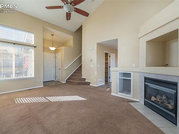 Fantastic cul de sac street with limited traffic. Enjoy ceramic tile floor at entry and dining area and kitchen. Vaulted living room with ceiling fan and fireplace. Enjoy ample morning sunshine in the living, dining, kitchen areas. Fantastic deck overlooks natural landscape in the open area behind, enjoy having no neighbors behind! Dining area has a sliding door walk-out to deck and adjoins kitchen area with stainless appliances. Adjacent the kitchen is the laundry closet and powder room privately set in the hallway leading to the basement. The upper level includes a fantastic master with en suite full bath plus walk-in closet. Rounding out the upper level are 2 additional bedrooms and another full bath. The basement holds a 3/4 bath, the 4th bedroom, and spacious family room with walk-out to patio and yard. Nestled in this sweet community, with convenient commutes to several local military installations, all the dining and shopping at Mesa Ridge & Fountain Mesa intersection, and easy access to I-25.