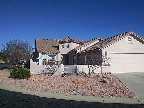 Enjoy this lovely home within golf course setting and spectacular views of the Mingus Mountains from your front courtyard - with nearby attractions of Sedona, Jerome, Clarkdale and Old Town Cottonwood. Relax in your own enclosed courtyard with pavers/flagstone as well as private covered back patio on quiet cul-de-sac in a gated community. This open concept floor plan boasts 10 ft ceilings, a custom front security door, sunscreens, rain gutters, custom paint, window treatments and upgraded tile throughout. Entertain in this fabulous kitchen with large island and lots of custom maple cabinets w/roll-out shelves and ceramic cooktop. Two bonus bay windows add to the elegance in the Master BR and Office/Den. Extra height vanity in master bath. Whole house water softener; filtration system and re-circulation pump for instant hot water throughout. Ceiling fans in every room. Cable and satelite ready. Insulated bonus sized garage (517sq ft). Beautiful Community Clubhouse with pool, spa and fitness center within walking distance. HOA Clubhouse - $105 monthly. Home warranty included. Buyers Agents Welcome at 3.0%