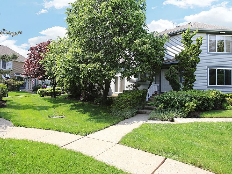 Immaculate unit - includes new central air units, recently painted, new lighting throughout. 3 bedrooms are generous in size and include large closets. Relax in your private oasis! Updated kitchen includes newer cabinets, mosaic tile backsplash, tile floors. Family room located off kitchen includes a wood burning marble fireplace, surround sound entertainment and cathedral ceilings. Hard wood floors abound. Basement is finished and generous. Two zone heating/cooling. Amenities include a pool and tennis court all located in a gated community. Unit includes three oversized bedrooms. Master bedroom has an en suite bath and walk in closet. Convenient to highways and shopping. Steps away from pool! Easy commute with many public transportation options.