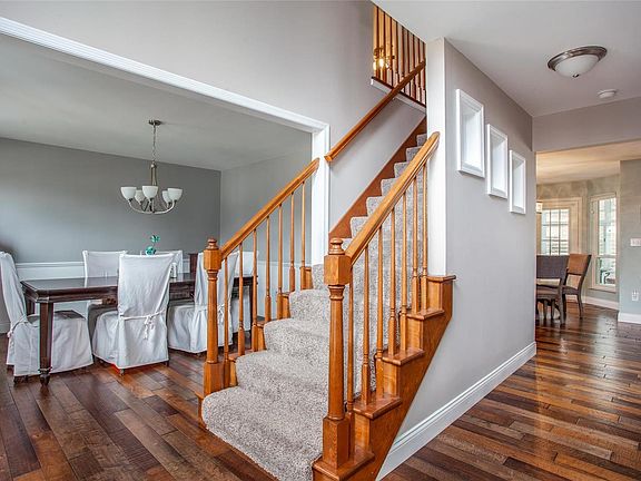 Dreams are made of homes like this! Step inside and be swept away by the Indonesian wood floors that extend throughout the main living areas along with fresh neutral colors. The professionally remodeled kitchen is a chef's dream with custom cabinets, new appliances, quartz counter tops, large pantry, center island, breakfast area and beverage station. Take the chill off of cool spring evenings relaxing by the gas fireplace in the oversized great room. Watch the seasons explode from your private 4 season room or on the patio overlooking a well landscaped yard which backs to common ground. The vaulted master suite includes double closets, jetted tub, separate shower and heated floors. Three large bedrooms and a full bath complete the 2nd floor. Entertaining will be a snap in the finished lower level complete with plenty of space for a theater area along with gaming table, wet bar and half bath. Oversized garage, updated lighting, modernized floor plan...the list keeps going!