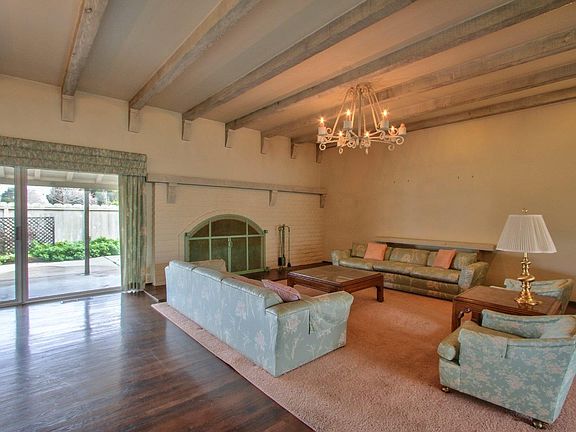 Large single story home in great location. Step thru the courtyard into this custom built home with expansive tiled entry featuring high, open beamed ceilings and wall of windows. Step down into the huge wood floored living room with wood burning fireplace and a wet bar tucked into a convenient corner. Huge kitchen with double jen aire cook tops, walk in pantry, ample counter space and area for breakfast table. Seperate dining room overlooking back patio. 3 bedrooms, 2 1/2 baths, Large family room could be 4th bedroom. Very well constructed home- you will notice the difference upon closer inspection. Lots of storage. Indoor laundry room. Oversized 2 car garage. Private, covered back patio. EZ walking access to multiple schools.