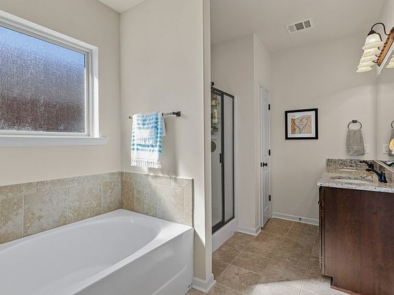 This well kept, precious home, built by DSLD, offers an open floor plan with 3bd/2ba and includes these features: granite counter tops with under mount sinks in the kitchen & bathrooms, kitchen island / breakfast bar also have granite counter tops, energy efficient Frigidaire appliance package, mini-blinds throughout, wood flooring in LR, ceramic tile in the wet areas, master suite features garden tub, separate shower, double vanity & large walk in closet, tankless water heater, brick & stucco exterior, fully fenced in and landscaped rear yard, with a patio!