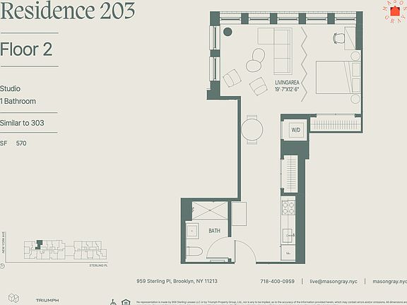 Larger than many NYC one bedrooms and boasting abundant closet space, elevate your lifestyle at Mason Gray, where modern luxury meets Brooklyn heritage in one of the most beautiful locations in the borough. Designed by Hopestreet and Morris Adjmi Architects, this iconic property exudes sophistication with its blend of textured red brick, sleek zinc shingles, and striking gables. Nestled in a historic neighborhood filled with turn-of-the-century brownstones and mansions, Mason Gray stands as a one-of-a-kind brand-new building, offering a rare opportunity to reside in a unique piece of Brooklyn's architectural history. Inside, indulge in open, airy layouts boasting panoramic views of the neighborhood greenery, downtown Brooklyn, and Manhattan's iconic skyline. Each detail, from the flow of living spaces to the selection of materials, reflects meticulous craftsmanship and attention to detail. Private outdoor spaces available in many residences, complete with custom kitchen cabinetry and bathroom fixtures, Blomberg stainless steel appliances, washer/dryer in every unit, and more. Mason Gray offers an array of upscale amenities, including a fully equipped state of the art fitness center, resident's entertainment and game lounge, outdoor patio, and private landscaped garden courtyard. With a live-in resident manager, on-site parking, storage and bicycle storage, every convenience is at your fingertips. Experience the epitome of modern residential refinement at Mason Gray, where respect for the past meets the diversity of local culture, enriching the Brooklyn experience. Please note photos are predominantly renderings and not of actual unit.