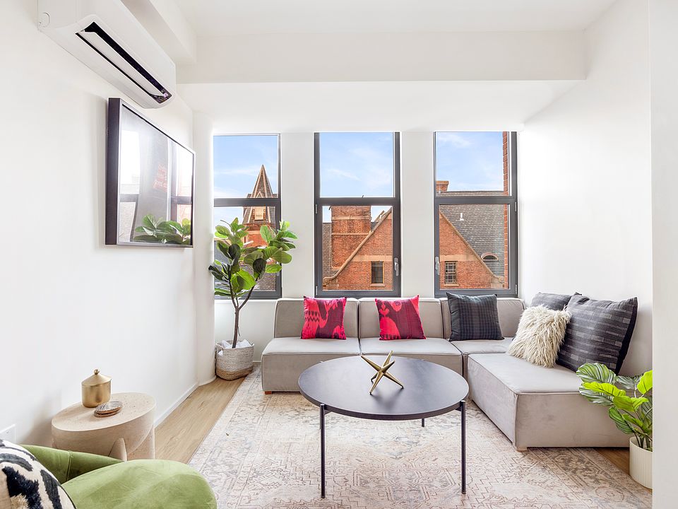 Inside, indulge in open, airy layouts boasting panoramic views of the neighborhood greenery, downtown Brooklyn, and Manhattan's iconic skyline. Each detail, from the flow of living spaces to the selection of materials, reflects meticulous craftsmanship and attention to detail. Private outdoor spaces available in many residences, complete with custom kitchen cabinetry and bathroom fixtures, Blomberg stainless steel appliances, washer/dryer in every unit, and more.