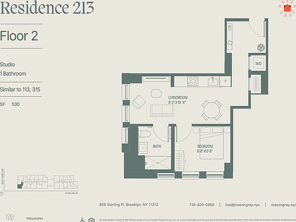 With outdoor space almost as large as the studio it surrounds, this is a gardener's or a pet owner's dream. Elevate your lifestyle at Mason Gray, where modern luxury meets Brooklyn heritage in one of the most beautiful locations in the borough. Designed by Hopestreet and Morris Adjmi Architects, this iconic property exudes sophistication with its blend of textured red brick, sleek zinc shingles, and striking gables. Nestled in a historic neighborhood filled with turn-of-the-century brownstones and mansions, Mason Gray stands as a one-of-a-kind brand-new building, offering a rare opportunity to reside in a unique piece of Brooklyn's architectural history. Inside, indulge in open, airy layouts boasting panoramic views of the neighborhood greenery, downtown Brooklyn, and Manhattan's iconic skyline. Each detail, from the flow of living spaces to the selection of materials, reflects meticulous craftsmanship and attention to detail. Private outdoor spaces available in many residences, complete with custom kitchen cabinetry and bathroom fixtures, Blomberg stainless steel appliances, washer/dryer in every unit, and more. Mason Gray offers an array of upscale amenities, including a fully equipped state of the art fitness center, resident's entertainment and game lounge, outdoor patio, and private landscaped garden courtyard. With a live-in resident manager, on-site parking, storage and bicycle storage, every convenience is at your fingertips. Experience the epitome of modern residential refinement at Mason Gray, where respect for the past meets the diversity of local culture, enriching the Brooklyn experience. Please note photos are predominantly renderings and not of actual unit.