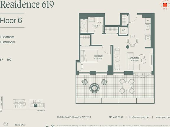 Exercise your green thumb and enjoy your own curated garden on the large outdoor space adjacent the living room and bedroom. Elevate your lifestyle at Mason Gray, where modern luxury meets Brooklyn heritage in one of the most beautiful locations in the borough. Designed by Hopestreet and Morris Adjmi Architects, this iconic property exudes sophistication with its blend of textured red brick, sleek zinc shingles, and striking gables. Nestled in a historic neighborhood filled with turn-of-the-century brownstones and mansions, Mason Gray stands as a one-of-a-kind brand-new building, offering a rare opportunity to reside in a unique piece of Brooklyn's architectural history. Inside, indulge in open, airy layouts boasting panoramic views of the neighborhood greenery, downtown Brooklyn, and Manhattan's iconic skyline. Each detail, from the flow of living spaces to the selection of materials, reflects meticulous craftsmanship and attention to detail. Private outdoor spaces available in many residences, complete with custom kitchen cabinetry and bathroom fixtures, Blomberg stainless steel appliances, washer/dryer in every unit, and more. Mason Gray offers an array of upscale amenities, including a fully equipped state of the art fitness center, resident's entertainment and game lounge, outdoor patio, and private landscaped garden courtyard. With a live-in resident manager, on-site parking, storage and bicycle storage, every convenience is at your fingertips. Experience the epitome of modern residential refinement at Mason Gray, where respect for the past meets the diversity of local culture, enriching the Brooklyn experience. Please note photos are predominantly renderings and not of actual unit.