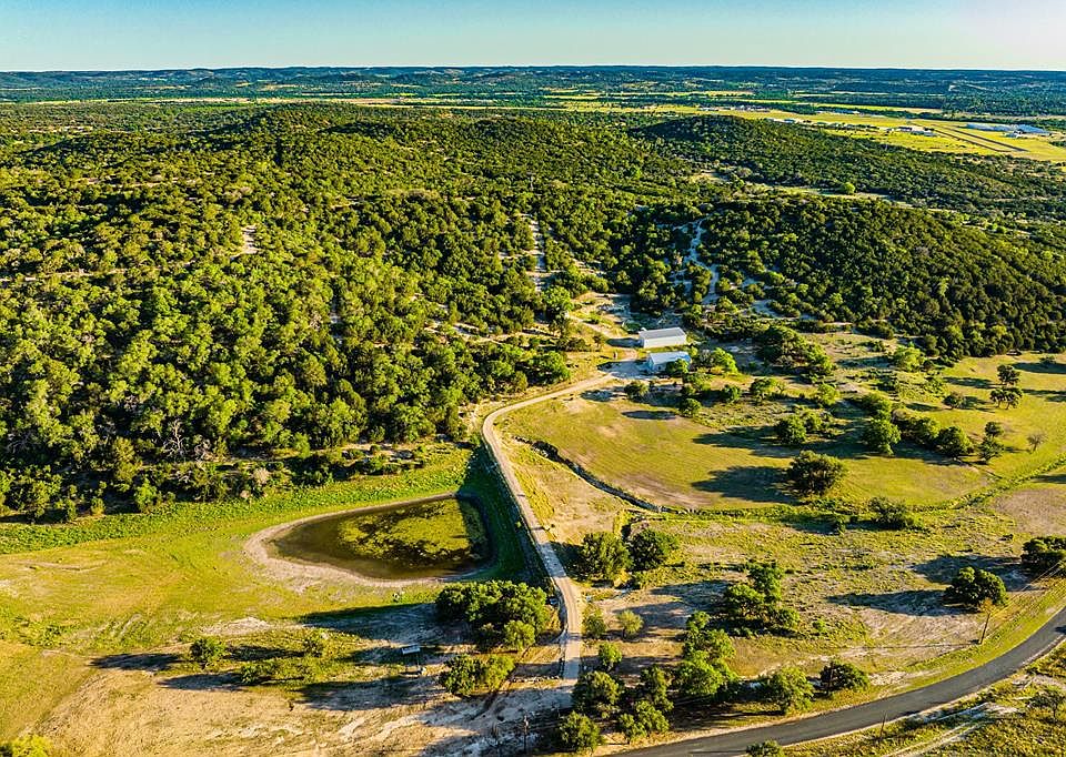 Encompassing 183 AG-Exempt Acres, this exceptional property boasts year-round Silver Creek running through it, creating a picturesque & dynamic landscape w/lush pastures, 2.5 acre lake & elevations as high as 1900'. All-metal 2/2 Barndominium is a standout feature w/Saltillo tile throughout for effortless upkeep. Lg wood deck w/pizza oven is perfect for outdoor living & dining, while open floor plan interior w/warm wood accents in the trim, cabinetry & beamed ceiling create cozy & welcoming ambiance. Kitchen is well-appointed w/ample counter space & cabinetry, tile backsplash, SS appliances & gas stove; each bathroom has glass block shower. Property includes central HVAC, new water purification sys & recently installed windmill. 2 sheds, one of which could be a stable & a spacious 24x80 barn for parking, equip and/or shop. The land's topography & cover offer an ideal habitat for wildlife, including whitetail & axis, making it an excellent hunting destination. Situated in the Creekwood Estates subdivision, where large acreage lots abound & just a short distance from Kerrville's shopping, medical & dining amenities. Convenient commute to Boerne (30 min) & San Antonio (1 hr) via I-10.