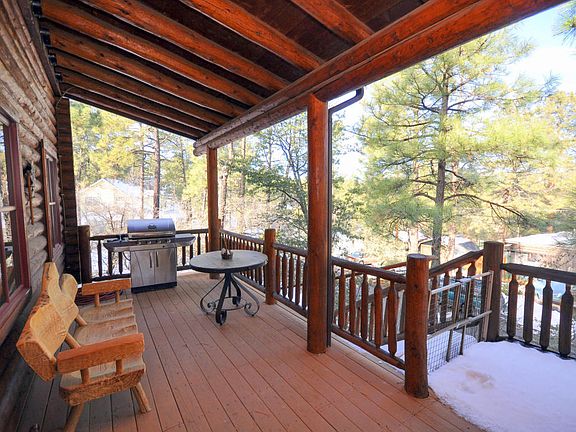 A TRUE LOG CABIN IN THE PINES...nestled in the desirable Mountain Club and just 2 miles from the Courthouse square. For the log cabin enthusiast, this beauty is the REAL THING! Log cabin inside and out, built in 2003 and cannot be duplicated for this price. This home boasts high vaulted ceilings with sky lights, master on main, & central air & heat. Guest rooms are upstairs with a large loft overlooking the large stone fireplace. The driveway is complimented by hand-layed pavers. Relax on the covered porch and watch the birds in the surrounding Ponderosa Pines. A beauty year-around or for the part-time enthusiast. All roads are paved & maintained by the city and the lot requires very little maintenance. Come enjoy this ONE-OF-A-KIND in the pines.