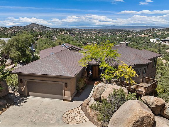 Unbelievable opportunity!! Investors and contractors welcome!! This home is located in the Boulders @ Crystal Creek in the heart of Prescott. This 3 bed 3 bath home sits on .76 of an acre, 360 views surrounded by boulders. Main level consists of living area with gas fireplace, master bed room with separate garden tub and shower, oversized walk-in closet and access to covered deck. Also on main is additional full bath, 2nd bedroom, office, formal dining and a beautiful open kitchen with high end appliances, also with deck access. Lower level has separate outside access, large bedroom, full bath, studio and office. Studio could easily be converted to kitchenette for a full living suite. This is a rare opportunity, in this area of Prescott with large lot and beautiful views!!