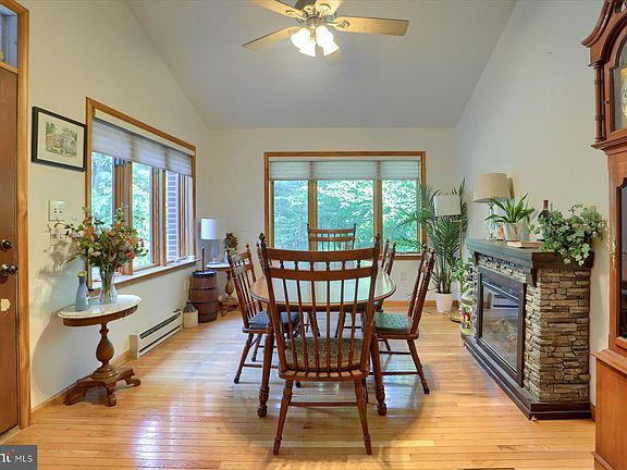 Turn into a private lane right off Wertzville Road you will find this historic log cabin in the woods beautifully updated for today's living. Oak, pine and cork floors on first floor. Master bedroom on first floor or can have 2 room Master Suite on second floor. Upper floor bedroom has a gas fireplace and French doors leading to a deck. Living room has large fireplace. There is an additional bedroom/sun room, dining room, eat in kitchen, mudroom and laundry room on first floor. Upper level and lower level decks. Although the property is served by public sewer, there is a septic tank on the property that goes to the public sewer line. The property has a 2 story 3 bay garage (currently being used as additional living space with bathroom). Also, there is a single car garage plus a 12x 15 storage shed. Small shed with porch and swing located in the woods. Roof new in 2020. This home is located within a mile from I81, 581 bypass, 2 grocery stores, 2 hospitals ,medical offices, and several restaurants.