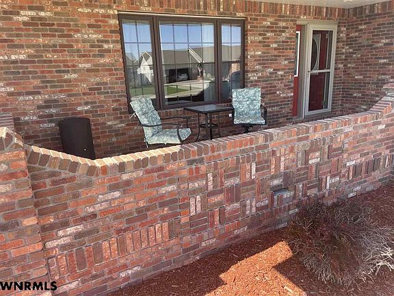 Great street appeal, with extra 3 car or rv parking on the drive and a cozy front porch. Enter into the wide open space of the great room/diningroom and kitchen with breakfast bar are, stainless steel appliances, pantry, and tons of cabinets. 2 bedrooms each with access to bathroom. The primary bedroom bath is a 5 piece spacious unit, spa tub, double sink, separate walk in shower complete with a wonderful walk in closet--- Both the primary bedroom and dining area have sliding doors to the raised patio with a brick retaining wall. Even wired for a hot tub. The yard is mature with a garden shed with an overhead door for easy access and options. Basement is finished, large egress windows for extra lighting, the family room is huge with one wall of built in's featuring a brick gas fireplace, 2 roomy bedrooms, full bath, large utility room located beneath the full bath and 2nd bedroom upstairs (current seller uses as an office) would be easy to move the plumbing upstairs if buyer would appreciate. the garage is oversized with tall ceiling. You'll appreciate the view, Call 308-631-9696 for your private showing