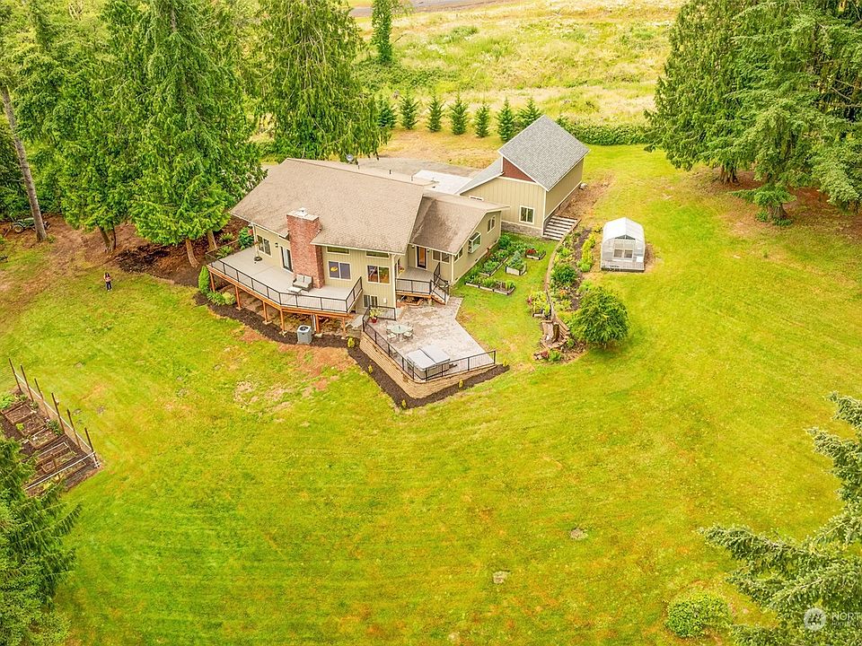 Beautiful Lodge-Like 3 Bd 3 Ba. w/ Primary Bdrm on the Main Floor. 2,500+ SF 2 Story w/ Unfinished Bsmt. Rose Valley Location at the End of a Long Private Road Situated on 5 Acres. Private, Secluded, Rural, & Treed. Beautiful Grounds w/ Trees, Shrubs & Mature Plantings. Amazing NEW Trex Deck w/ Relaxing Forest Views. Stamped Concrete Patios & Paver Pathways. Hot Tub. Outdoor Entertaining Space. Beautiful Eat-In Kitchen w/ Cooking Island. Granite. SS Appliances. Dining Room. Beautiful Wood Floors. NEW Carpeting. Great Room/Living Room w/ Wood Fire Place & Vaulted Ceilings w/ Amazing Picture Windows. Raised Garden Beds & Fenced Garden w/ Irrigation. Green House. Forced Air HVAC w/ Heat Pump. 832 SF Detached Shop/Garage. RV Parking. No CC&RS.