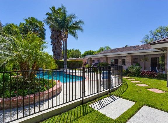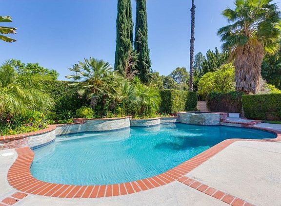 This home is gorgeous & breathtaking! Beautiful curb appeal w/ lush landscaping, stone walkway w/ brick ribbon. Living Room is light & bright & features crown molding & a fireplace. Family Room has wood laminate flooring, ceiling fan, & custom window sliders. Kitchen offers center island, breakfast bar, wine fridge, pantry, ample cabinetry, & stainless steel double ovens. Master Suite has gorgeous shutters, ceiling fan, & spacious closets. Master Bath features dual vanities, steam shower, & jacuzzi tub. Backyard has a covered brick patio w/ ceiling fan, grass area, gated pebble sheen pool, & spa that overflows into the pool. Other amenities include: built in Bar-B-Que, tankless water heater, & the backyard is wired for outdoor speakers. This home is truly one of a kind. Decorator sharp! Stunning!