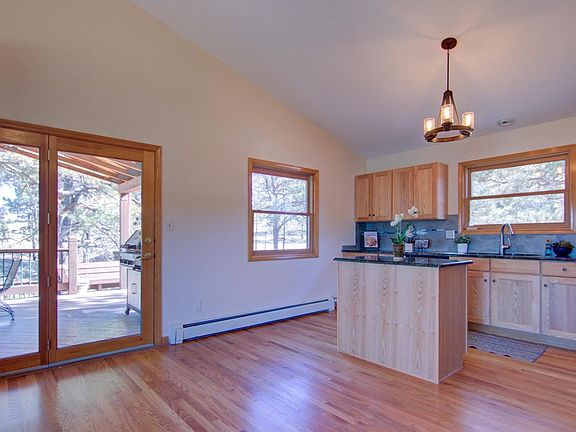 Pristine 4.98 acres in the heart of the Forest. This property borders ~1,500 Audubon Society property to the north, and an ~80-acre parcel of land to the east. Stucco/brick tri-level. Easy access to the 1,296SF barn, perfect for horse lovers w/3 stalls and room to expand. Bonus basement room could be used as an office, craft room or 4th bedroom/sleeping area. Oak floors throughout main level. Granite counters and newer cabinetry in the kitchen. Gas range/oven. Double-paned aluminum clad wooden windows. Two fireplaces for those cozy Colorado winter nights (main level and basement). Heated tile flooring in bathrooms. Storage shed for yard tools. 3-tiered back deck. The 23x15 top deck is covered and features built-in skylights and a plexi window to shield you from the Colorado wind + 20X17 and 16x16 decks w/built-in seating. Oversized 2-car garage with workshop area. New roof in 2016. New interior paint and some new light fixtures. The possibilities are endless here. One of a kind.
