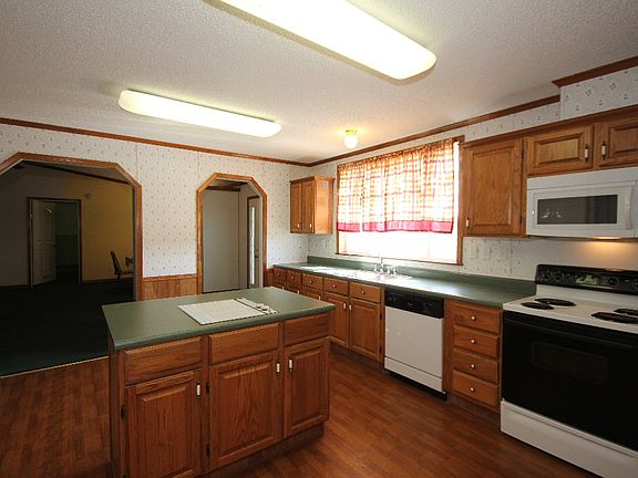 Custom built Mfg home;open design.Split bdrms,2 x 6 walls, oak cabinets & crown molding thruout.Woodburning fp w/heatalator,JenAir grill in kitchen island.Master includes dbl closet-one is cedar lined.Jetted tub;sep.shower.Very nice home-well maintained.