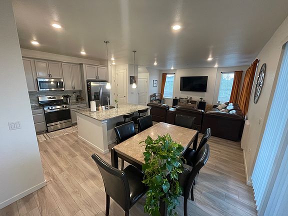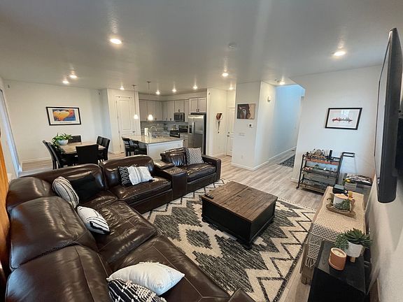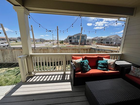 Welcome to this stunning fully furnished paired home in the gorgeous Buffalo Highlands neighborhood of Commerce City. This spacious corner unit is bathed in natural light, featuring a wrap around front deck. The home has been freshly painted and boasts modern gray luxury plank flooring throughout. Step into the large kitchen with its huge island, tile backsplash, and stainless steel appliances. Sliding glass doors lead to a covered patio, perfect for outdoor entertaining. The upstairs includes 3 bedrooms and 2.5 bathrooms. The master bedroom is a retreat with a coffered ceiling, luxurious master bathroom, and a huge walk-in closet. For added convenience, the washer and dryer are located between the bedrooms. Energy efficiency is a highlight with solar panels that will help significantly reduce your energy bill. Location is everything, and this home is just 7 miles from DIA. Golf enthusiasts will love the proximity to Buffalo Run Golf Course, only 8 minutes away. Additionally, the Rocky Mountain Arsenal National Wildlife Refuge is just 10 miles from your doorstep. This urban refuge offers an 11-mile Wildlife Drive auto tour, 20 miles of biking and hiking trails, fishing, archery, and opportunities to see bison, deer, raptors, songbirds, waterfowl, and coyotes! Near a shopping center and access to E470! Don't miss out on this incredible rental opportunity in Buffalo Highlands!
