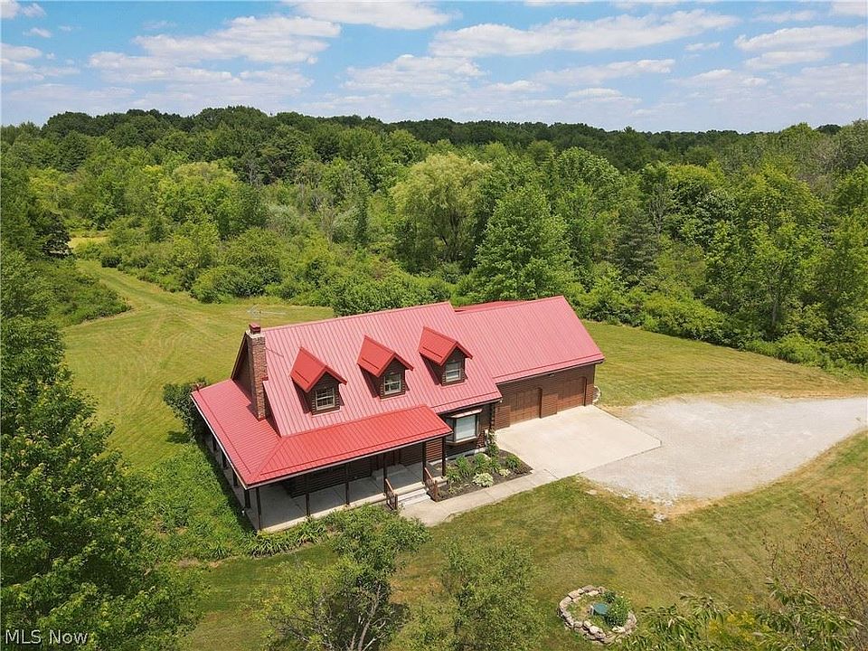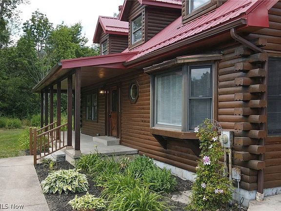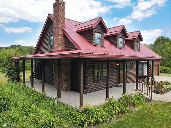 Nature is not a place to visit. It is home."--Gary Snyder. 1991 built log cabin situated on an extraordinary 5 acres in award winning Kenston Schools. A perfect place to reset, renew, and reconnect. Feel yourself decompress as you meander down the long drive to this entirely private oasis. Follow the winding paths to your own private apple orchard. Gather berries or a bushel of chestnuts to roast over the fire. Sit beside the pond & listen to the frogs chatter over the lilypads. Read a book on the deep wrap around porch while enjoying both the stillness and the livilness of the land. 3 bedrooms, 2 full bathrooms, fully finished basement & attached 2 car garage. Inside the stunning great room reveals vaulted ceiling, hard wood floors & a massive stone fireplace. The great room opens to both the dining room and the eat-in kitchen. Enjoy a breakfast bar for casual dining, a full set of appliances, a pantry & adjacent laundry room. You will love having the huge mudroom that connects the two car attached garage. A bathroom & bedroom complete the main floor. Upstairs, you will find a lovely loft w/views of the gorgeous property. 2 more rooms upstairs and a roomy 2nd bathroom that has been recently refreshed with granite countertops. The finished LL surprises with a reclaimed bar & stained glass details from a landmark downtown Cleveland location. Brand new metal roof in '22. Perfect retreat to enjoy year round. Do not miss this unique opportunity to enjoy a true legacy property.