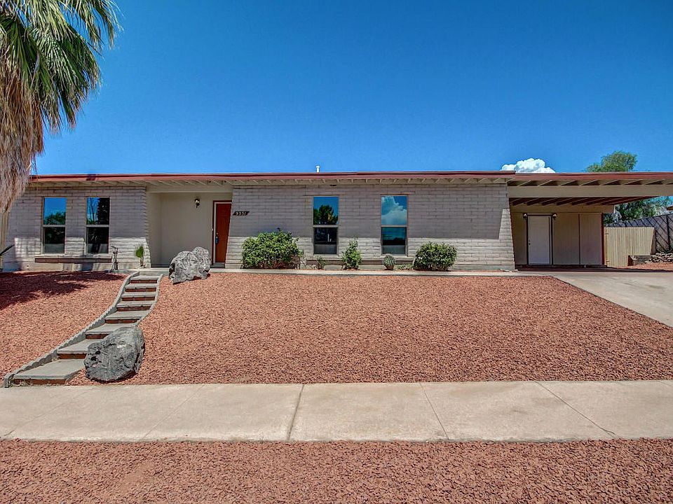 This Eastside charmer is upgraded and ready to move in. Over 1,600 square feet of space boasting 3 bedrooms, 2 baths, and a Den/Office with direct access from the carport and private sliding doors to a covered patio. Perfect for an office or multi-generational space. The Jack-n-Jill guest bath opens to the den as well. Everything has been updated, flooring, counters, cabinets, and paint. Popcorn removed from the ceilings and modern fixtures throughout. Outside is a large covered patio that opens to the inviting pool. Plenty of room for a garden, playset, or your favorite hobby. Dog run on west side of home is out of the way. All of this with NO HOA!