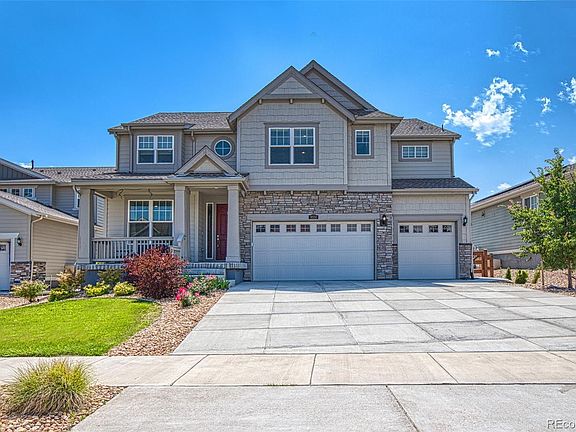 Welcome home to this stunning property with beautiful mountain views! The open and spacious floor plan features 20-foot vaulted ceilings in the great room, creating a grand and inviting atmosphere. The home boasts 4 bedrooms and 4 bathrooms, plus a versatile loft. Enjoy the luxurious owner's retreat, complete with a 5-piece bath, and a large walk-in closet adjacent to the large laundry room. An additional flex space near the entry can be used as an office or a dining room. The gourmet kitchen, equipped with GE stainless steel appliances and double ovens is perfect for culinary enthusiasts. Entertain guests outdoors by the gas fire pit or cozy up inside by the gas fireplace. Community amenities include parks, trails, a pool, clubhouse, and fitness center. Conveniently located close to King Soopers, restaurants, a childcare center, and many other businesses. Three Creeks K-8 school is within a 7 minute walk. Don’t miss the opportunity to make this exceptional property your new home!