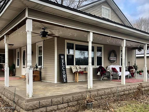 This home is a beauty all on 2 acres and 5 minutes from 131 or Federal for easy traveling. Starting with a extra deep, half wrap country porch on a shaded lot, you will step inside to an open dining and living room with capability to turn the dining room into another sitting room, the choice is yours. There is another dining nook in the kitchen as well. You will find 2 bedrooms off the dining and LR each with a sliding barn door but the original doors are still attached if preferred. The kitchen is spacious with an abundance of cabinets and counter space, island with cook stove. The laundry is on the main floor and this deal includes the washer and dryer. The refrigerator in the garage could be brought inside and used in the kitchen or you can buy a new one and leave the garage as is.