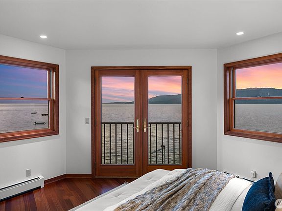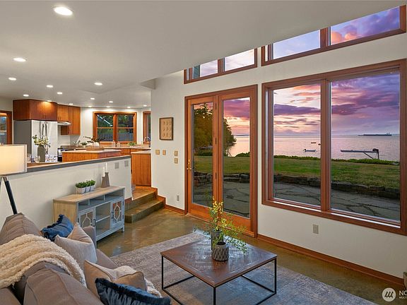 Welcome to a Moceri Construction masterpiece where Frank Lloyd Wright-inspired design meets Northwest craftsmanship. This Samish Island estate rests on half an acre with 100’ of low-bank waterfront, offering direct beach access and a professionally engineered bulkhead for peace of mind. Inside, vaulted ceilings, custom finishes, and water views from every room complement the thoughtful floor plan. The kitchen offers leathered granite countertops, cherry cabinetry, and abundant space for gathering. Upstairs, the primary suite features Brazilian cherry hardwoods, a spa-like bath with steam shower, and a balcony ideal for morning coffee. Experience a coastal lifestyle defined by timeless architecture and the natural beauty of Samish Island.