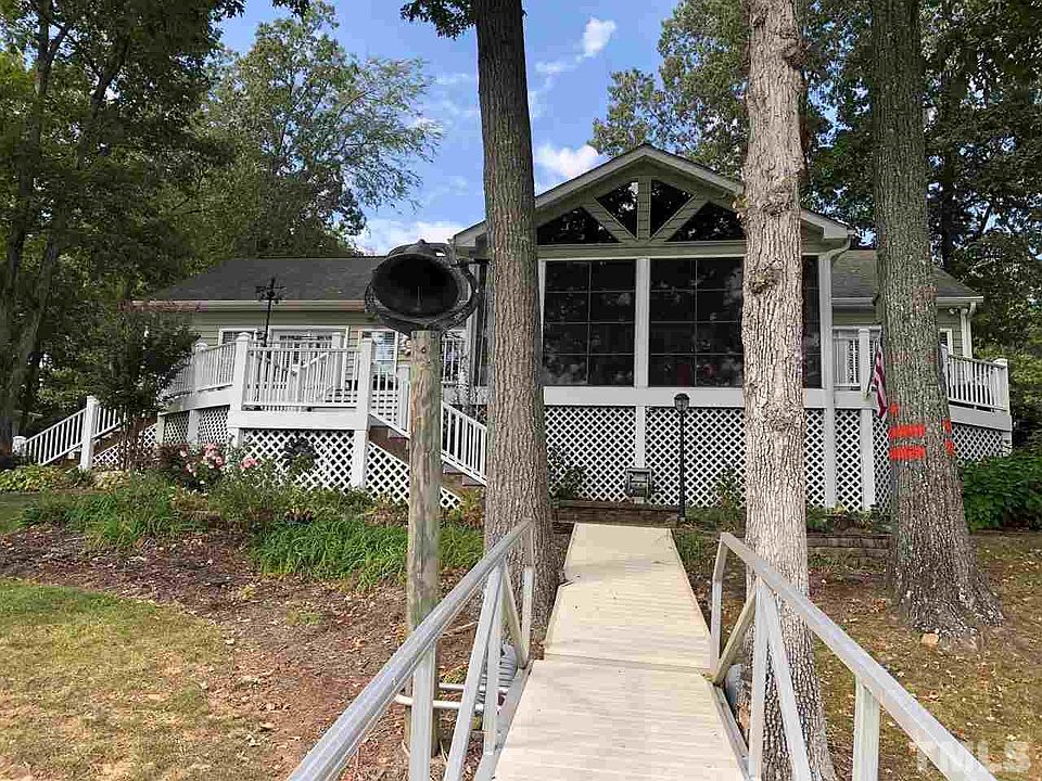 The Perfect Lake Home........This 3 Br, 2 Bth ranch style lake home has a 20x13 3 season room overlooking the lake & your covered aluminum dock just a stone's throw away. Meticulously maintained, this home has oak hardwood floors throughout w/ceramic tile in the baths. Granite counter tops, upscale cabinets, & walk-in pantry are just a few of the many features in this home. Both the attached & the detached garages are finished inside with HVAC units for both. There is also a 12x24 wired storage building.