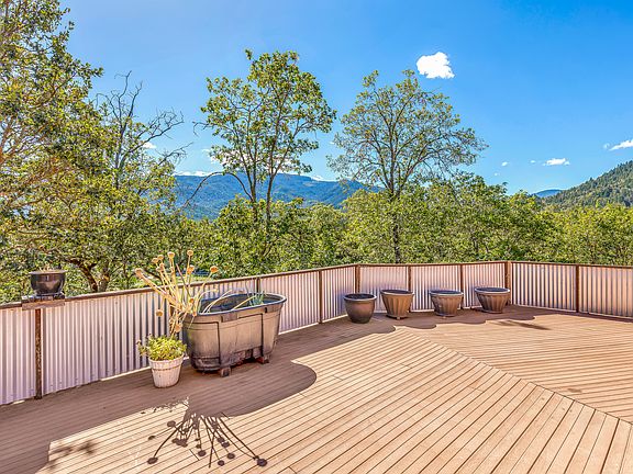 Beautiful Applegate Valley property with expansive & breathtaking views! Gated, paved & private entrance! 3 bed 2 bath, 2,678 sq ft home on 1.96 acres. Large great room featuring a stunning stone hearth framed by picture windows & glass doors leading to the large deck! Solid surface floors throughout, vaulted ceilings, certified Quadra Fire wood stove & an open floorplan. Updated with Energy Star heating & air system & commercial grade ducting. Power can be easily switched to a generator (generator not included). Large master bedroom features Avalon pellet stove, tall windows for plenty of natural light & French doors to the back deck. Double vanity, soaking tub & large walk-in closet with custom shelfing. Oversized 2 car garage. Low maintenance garden with gravel paths & raised beds. 12x12 screened porch area with fiberglass roof. So many amazing features! Many updates & upgrades since the home was built, including roofing, heating & cooling system, water heaters, gutters & more!
