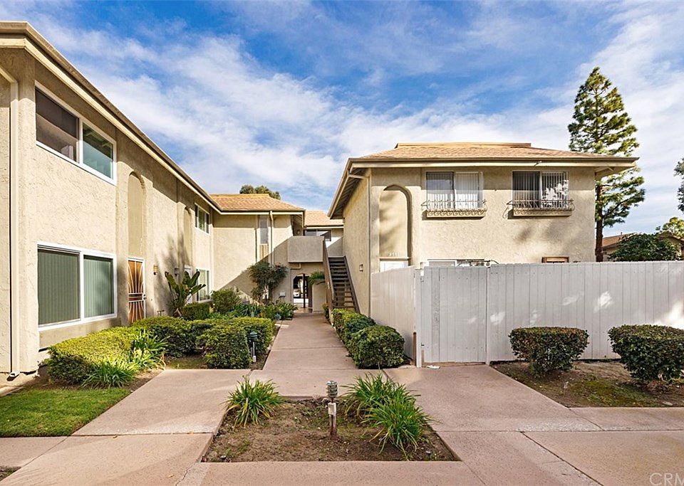 Light & Bright, One Level End Unit Townhome Located within 3 Miles to the Beach in the Desirable Community of Yorktown Villas! This desirable floorplan boasts spacious rooms with privacy and windows galore! The Beautifully Remodeled Sunlit Kitchen includes brand new stainless steel appliances, including exhaust vent, gas freestanding stove/oven and dishwasher, stainless sink, elegant hickory woodhaven style cabinets and quartz counter tops with laminate wood plank flooring! Added features in this home include step in shower with glass doors, bathtub with shower, full copper plumbing, fresh paint, wood blinds, new carpet, mirrored sliding closet doors, ceiling fan, upper deck patio great for entertaining, 2 carport parking spaces with large storage closet, large greenbelt and playground area, gated pool area, interior tract location, close to beach, restaurants, shopping, parks, schools, and freeway.