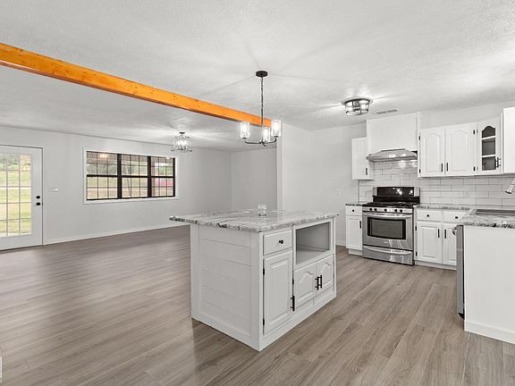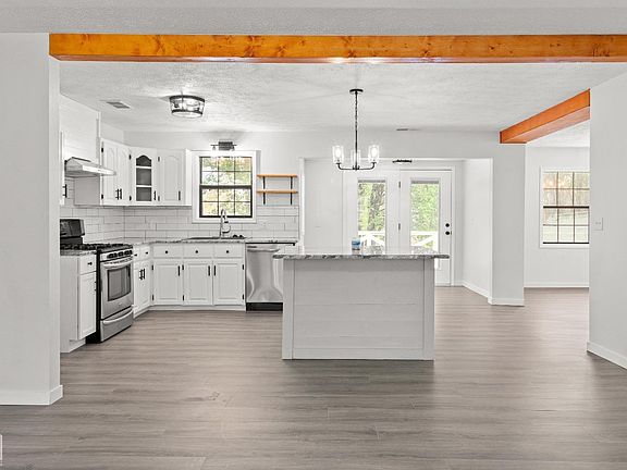 If you are looking for a home in the country with acreage, this listing is for you!! This home has been completely updated with fresh painted ceilings, new sheet rocked walls, and new flooring throughout the entire home. Open the front door and you will notice it has an open floor plan concept with wooden beams. The living room opens up into the kitchen which features stunning new granite countertops adding a touch of elegance to the upgraded kitchen with island. It has a breakfast nook and beautiful french-doors that leads out onto a large 50 foot deck. The deck would be perfect for bbq's and family get togethers, or just sitting and enjoying the outdoors. This beautiful kitchen flows into a wonderful dining room that has a gorgeous double window letting in lots of natural light. The new black chandelier sets it off. It also has a cute little nook with floating shelves giving the room so much character. There is a large walk-in pantry off to the side of the dining room. We added a long cabinet with a butcher block top where you can store small kitchen appliances and food. Lots of room to add shelving of your choice. This home features 3 bedrooms. The master bedroom is large with beautiful doors that leads out onto the deck. The master bath has two walk-in closets, and a beautiful stand-alone tub. All the fixtures are new. You will also see beautiful white shiplap walls that are stunning and the black round mirrors set it off. The white cabinet can be used to store towels and wash cloths. The guest bathroom is all new and has a brand new large, tiled floor to ceiling, walk in shower. The laundry room is a nice size with new butcher block counter tops. You can also enter the laundry room from the deck. Step outside and you will discover a fenced in yard, a barn, and a pond. This property sets on 4.67 acres. This home has all new electrical, new plumbing, new lighting and a new 5-ton HVAC system. This is a must see! Seller to pat up to $5,000 in closing fees