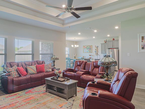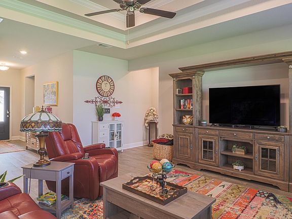 Just like new DR Horton home that qualfies for 100% USDA financing-This Jasmine floor plan has a great layout! Large living area with 10ft ceilings that is open to kitchen. Kitchen has tons of cabinets with center island. Granite countertops & stainless appliances This is a split floor plan with 4 bedrooms-Primary suite has private bath with double sinks, separate tub/shower & walk in closet. Roomy back porch with TV hook ups to mount your TV and fenced back yard. Home has all blinds installed. Come relax in your just like new home in this quiet community.