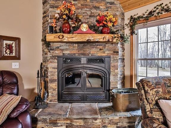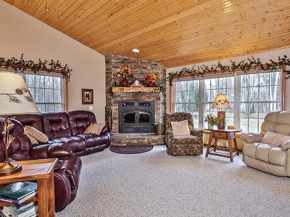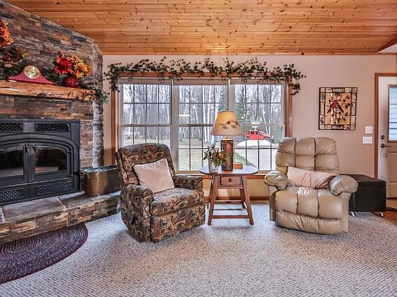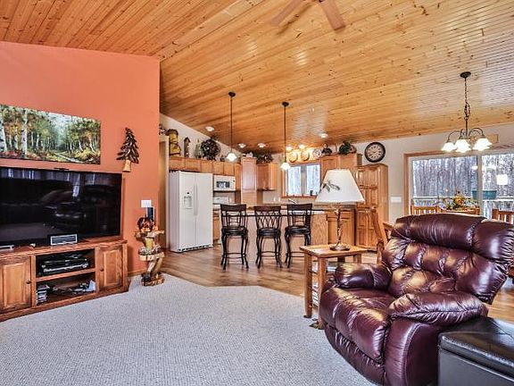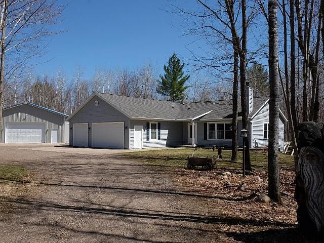 This spacious three bedroom, three bath home offers excellent privacy and is situated on it's own 5+ acres of land. This 12 year old home is in great condition and has been meticulously maintained. It has an open concept main living area with lots of windows so you can enjoy the natural beauty of your wooded surroundings. There is an extremely efficient wood burning fireplace upstairs and a gas stove downstairs to keep you nice and cozy all winter long. A great lower level includes a nice walkout workshop and awesome family room. You will certainly appreciate the three car attached garage and go absolutely nuts about the 48' x 36' pole building. To top it all off, the property is within walking distance to the Little Bearskin Lake boat landing and very close to snowmobile trails.