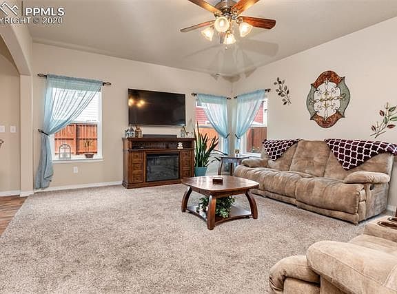 Don't miss your chance at this immaculate 4 bed home in desirable Cuchares Ranch! Located minutes from Peterson AFB and Fort Carson! Greet guests in the open and spacious entryway! Office is perfect dedicated space to work from home! Open concept kitchen and living room make for a perfect area to entertain boasting tons of natural light! Gourmet kitchen featuring stainless steel appliances, double oven, slab granite counters, and massive pantry is a chef's dream! Kitchen island makes for a great space for breakfast or kid's homework! Back patio is perfect for summer BBQ's! Upper loft could be used as second living room, kid's hangout area, or man cave! Huge master suite is amazing! Master bath comes complete with oversize soaking tub, beautifully tiled shower, double vanity, and gigantic walk-in closet! Three more upper level bedrooms make for great kids or guest rooms! Tandem 3 car garage provided additional parking or workshop space! Shed in backyard helps keep the garage free of yard equipment! Homes this nice don't last long, so schedule your showing today!
