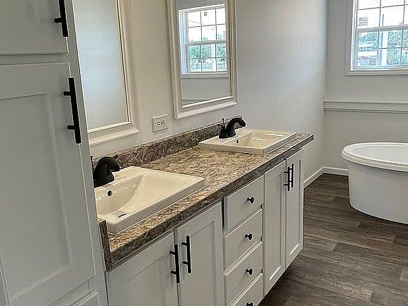 Brand New Champion Homes Madrid Model. Open Floor plan, drywall throughout, Large Kitchen with lots of cabinet space, upgraded stainless appliances, and farm sink. Ceiling fans in LR and all 3 bedrooms. Master bath has both stand alone tub and walk in tile shower. Home will be completely setup with 8x20 screened lanai on front, 12x26 screened lanai off back that leads to covered patio for grilling out, and large carport over concrete drive. Located in Key Allegro Villas, Fairhope's premier 55+ community. Video Walk thru now available Click the virtual tour button.