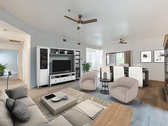 Live the high life in this luxurious condo located in the heart of Scottsdale. This impeccably appointed home features top-of-the-line finishes, an open floor plan, and breathtaking views. You'll love the convenient location, with top dining, shopping, and entertainment just steps away. This is the ultimate opportunity to upgrade your lifestyle and embrace the best that Scottsdale has to offer. Upgraded 2 bedroom, plus den/office, 2 bath condo in one of the most sought after locations in Scottsdale. New flooring through out, lighting, master bath walk-in shower, walk-in closet with built in shelves and drawers, solid surface counter tops, raised glass basins, water fall facets, and mirrors, new paint through out, front entry security door and screen, stainless steel dishwasher, double oven microwave, New Refrigerator and front load washer and dryer, eat in kitchen, 2 covered patios access from master bedroom and living room with views of the pool.