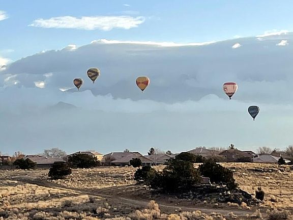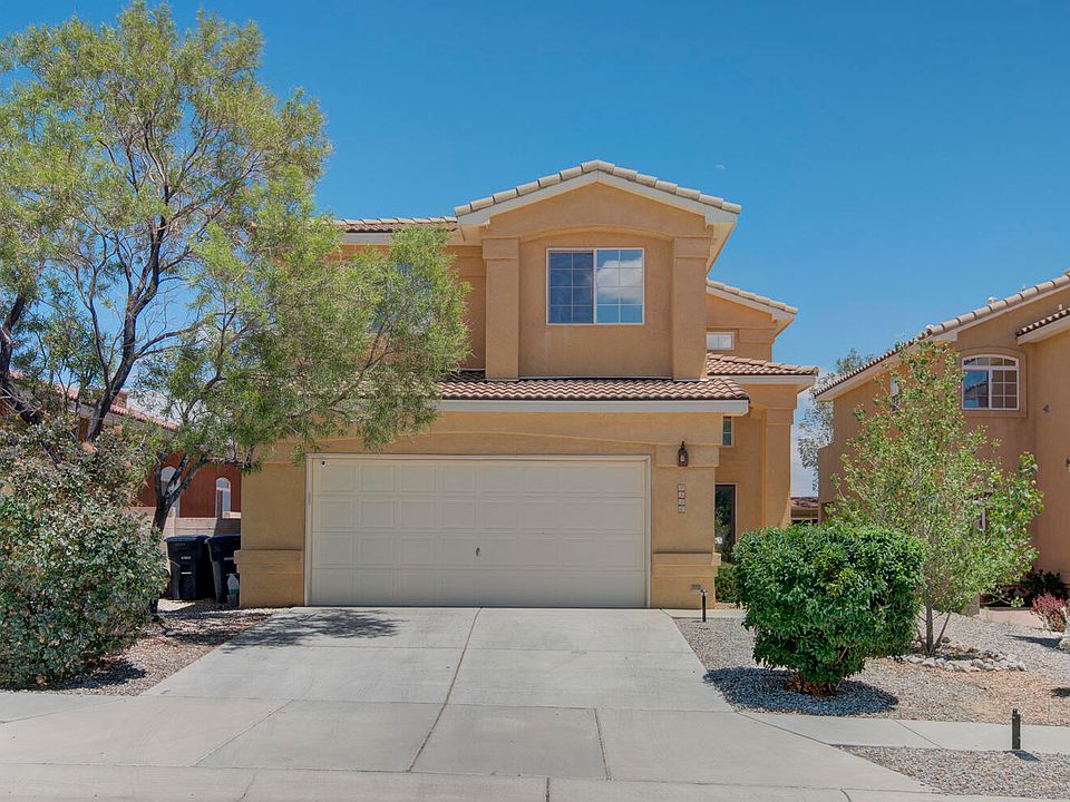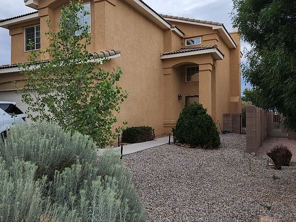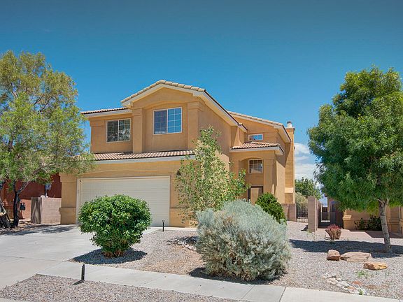 OPEN HOUSE SAT 1-3 You'll be delighted with the unobstructed Mountain, Sunset, Balloon Fiesta Views from this lovely home. The property backs open space so you'll never have a neighbor backing your home and will enjoy the space for walks, runs, and enjoying the wildlife that visit. Many recent updates include the lighting fixtures, some appliances, countertops. Tile graces the floors downstairs, laminate upstairs Enjoy the loft, view deck and 3 bedrooms upstairs. The primary suite features views, a garden tub, separate shower, double vanity and walk-in closet. Downstairs enjoy a fireplace, access to the covered patio, kitchen/dining area and VIEWS!