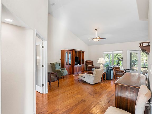 Dreaming of an idyllic location on a lake? Look no further than this well-maintained single story brick home in sought after Daphne's Sehoy neighborhood. With a relaxing front porch, this house has 4 bedrooms, 2 bathrooms, neutral paint colors, wood floors, open floor plan, split bedrooms, tall ceilings. Loads of natural lights with back of house having plenty of windows to enjoy the water view. Eat-in kitchen has lots of custom cabinets, corian counters, pantry, stainless steel appliances to include gas range, microwave, dishwasher, disposal, refrigerator. Dining options include kitchen breakfast area as well as formal dining room. Large living room situated toward the lake. Primary bedroom suite has a vaulted ceiling, single vanity, soaking tub, separate shower, toilet and walk in closet. Front bedroom makes a delightful office or bedroom if needed. 2 carpeted guest bedrooms share a hall bathroom. New windows and blinds throughout. Screened back porch. Covered back patio. New fortified roof (3/2025) and new water heater 2/2025. Irrigation system. Side entry double garage. All information deemed reliable and accurate. Buyer to verify all information during due diligence.