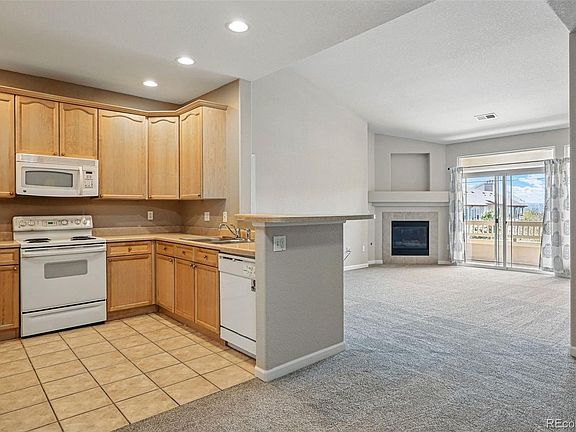 Top-Floor Condo with Stunning Views & Unbeatable Location. Tucked against the scenic Hogbacks, this beautifully updated 2-bedroom, 2-bathroom condo in Redstone Ridge offers the perfect blend of comfort and convenience. Enjoy breathtaking mountain views from your private balcony in this bright, top-floor unit. Inside, the open floor plan is designed for modern living, featuring a cozy fireplace, brand new carpet/tile floors, and an inviting kitchen & dining room. The spacious primary suite includes an en-suite bath, while the second bedroom is ideally positioned with a nearby full bath. In-unit laundry, a newer furnace and AC, and a detached 1-car garage with storage add to the home’s appeal. Ideally located with quick access to C-470, this condo provides seamless connectivity to the mountains and the city. Enjoy being just minutes from an array of it all: Chatfield Reservoir, grocery store, top-rated restaurants, and outdoor recreation, with trails & open space steps outside your front door. Low HOA fees and a host of community amenities make this an incredible opportunity. Don't miss out on this prime SW Littleton gem!